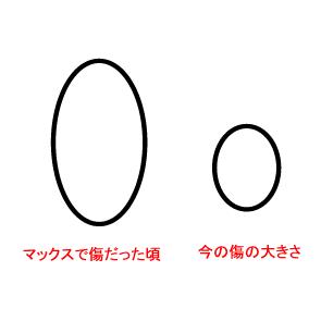 傷のほうですが、可動部位の傷のためびっくりするほどの治りはないのですが、下記の感じくらいになりました。