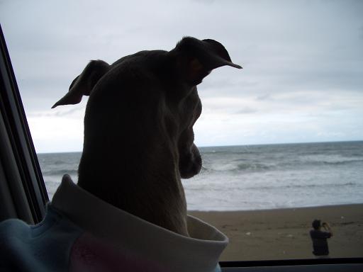 海辺で海の写真を撮ろうと意気込んでるミネパパを眺めるミネラル(笑)