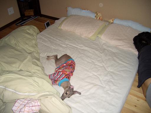 うちは一応わんことは一緒に寝てない派なのですが、寒い朝はご飯食べた後など、ミネラルは私たちの布団にまっしぐらだったりします(笑)