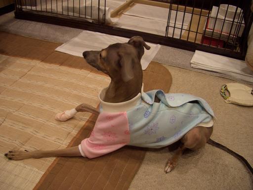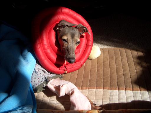 エリザベスカラーの代わりにドーナツカラーしてますが、やはりあまり意味がありません^^;;