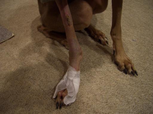 手術そのものでできた傷はすごくきれいなのですが、骨折でダメージを負った皮膚がちょっと傷になって、今まで副木で覆っていたので治りが悪いというか、今まさに傷状態(穴があいてるというか^^;;)で^^;;