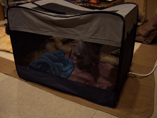 ここで寝させるわけにはいかないのでどうしようか考えた結果、ソフトケージが重宝しました♪