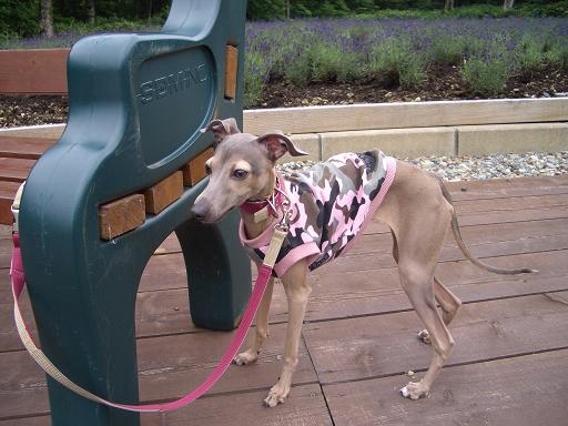 このラベンダーパークで初めてイタリアングレーハウンドを見たんですよ!