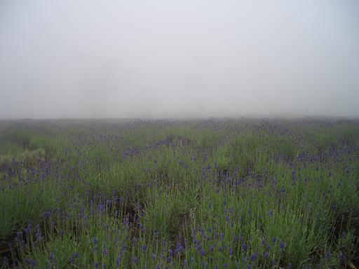 ラベンダー畑にたどり着いて・・・風が出てきたな、なんて思ってると・・・・・霧!