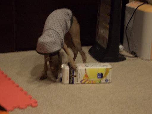 空になったワインの紙パックで喜んで遊んでいるところです(笑)