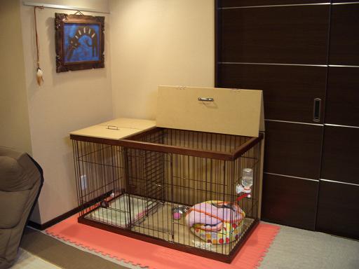 さて、相方がミネラルのケージ(サークル)の蓋を作ったので、是非写真に撮ってブログに載せてくれというので・・・。