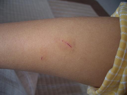 」と大げさに言ってみたら・・・「それは噛まれたんじゃないよ。歯の刺さった跡が付かなきゃ噛まれたとは言えないよ。」