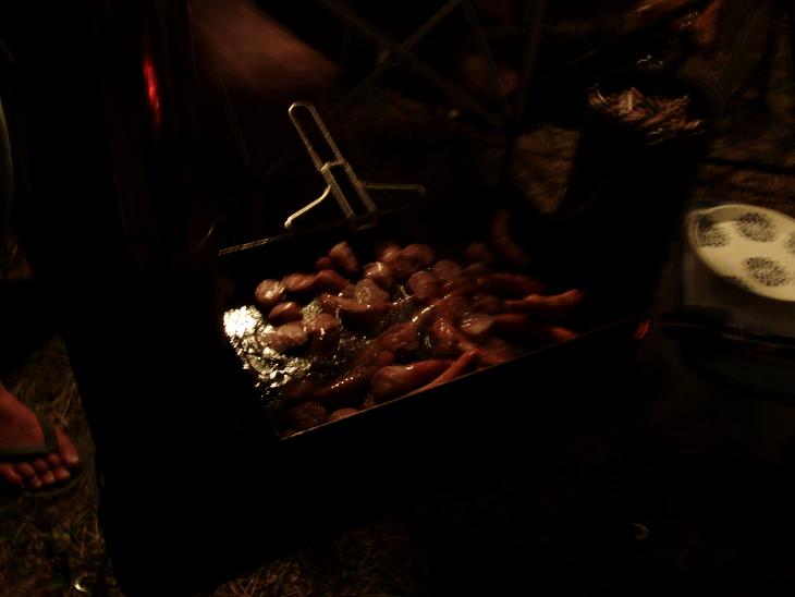 ウインナーを焼いているところです。