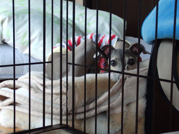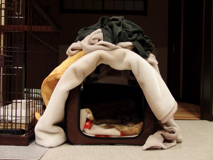 ミネラルの寝るハウス(ケージ?クレート?)我が家では「小屋」と呼んでいますが(笑)