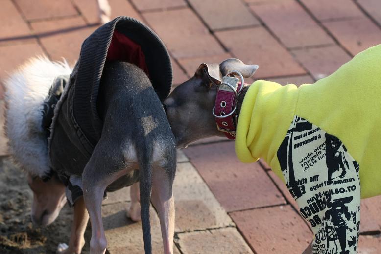 この日、実はそのセーターを着て行こうかとも思ったのですが、ランで戯れて傷めたりするのももったいないのでロンパにしたのでした。